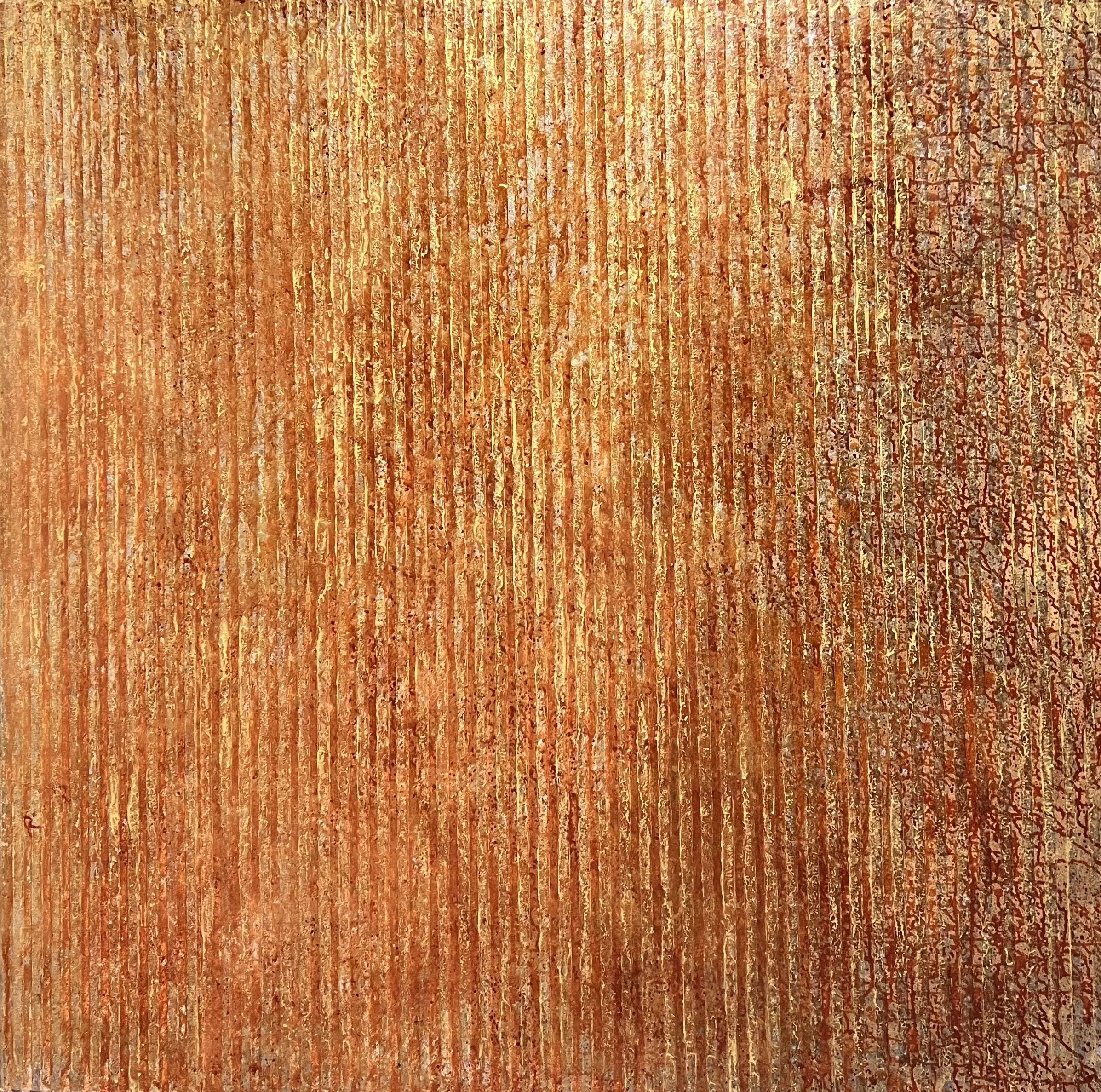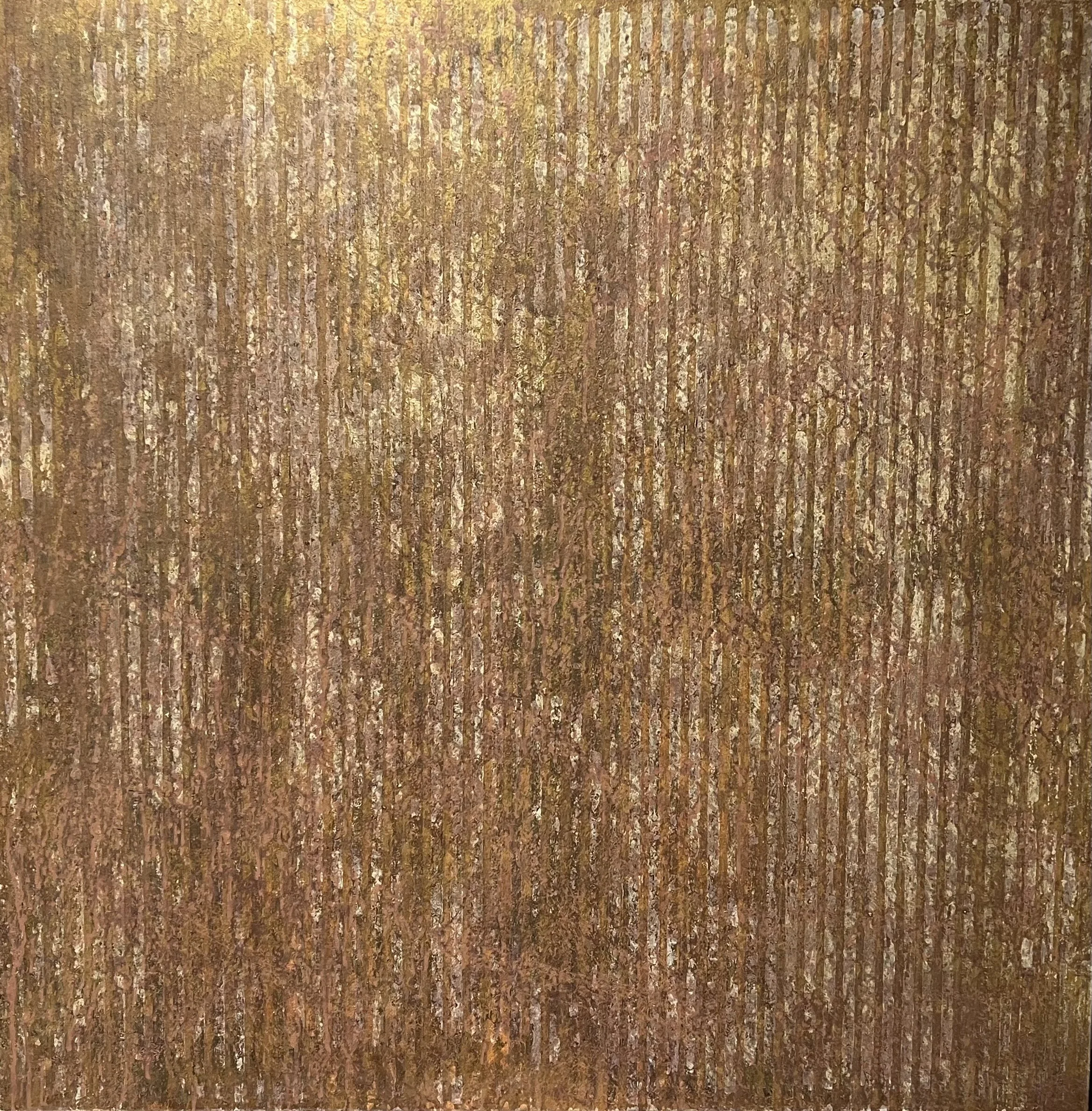 Blinds of Brown and Gold Oil on canvas 150 cm x 150 cm x 5 cm (76” x 76”)