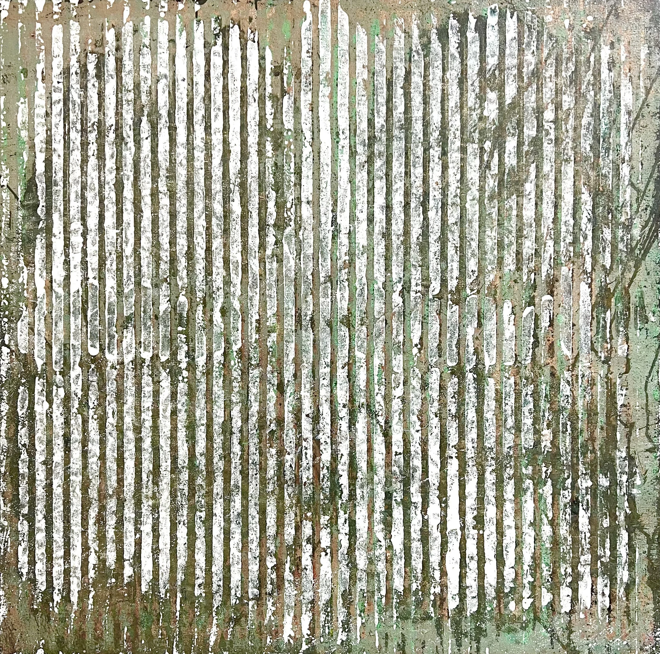 Blinds of Olive Green Oil on canvas 100 cm x 100 cm x 5 cm (40” x 40”)